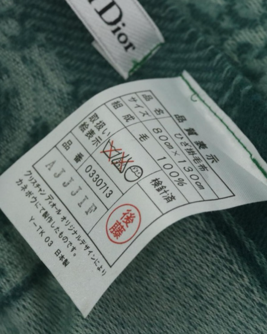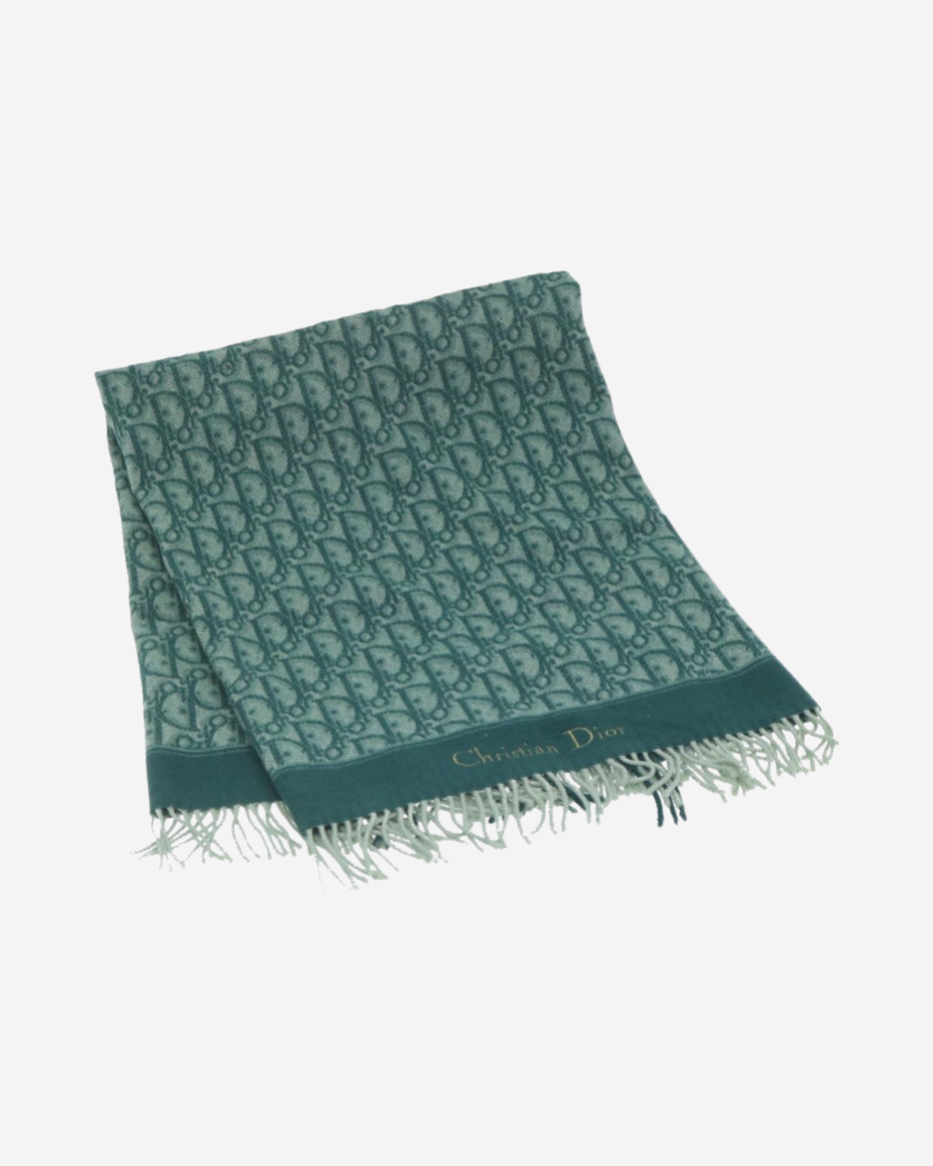 • Descripción: Chal adornado con flecos en los bordes y motivo Dior Oblique en verde.