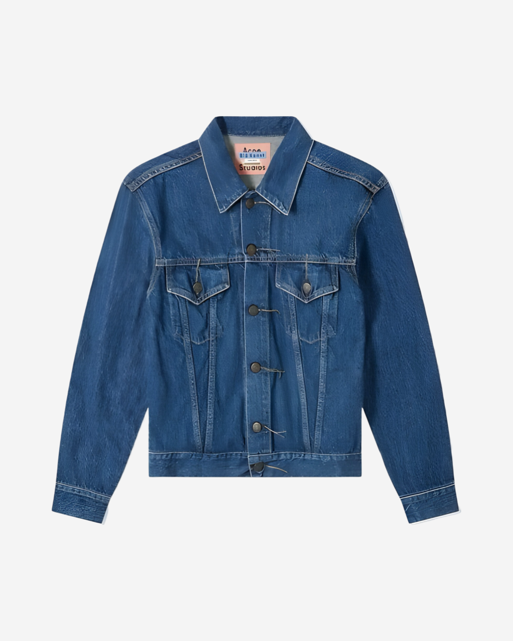 - Descripción: Chamarra de denim en color azul, manga larga, auste con botones, hardware color dorado