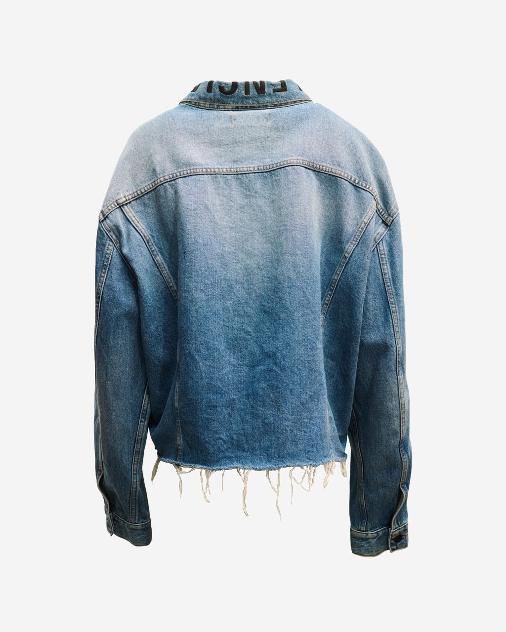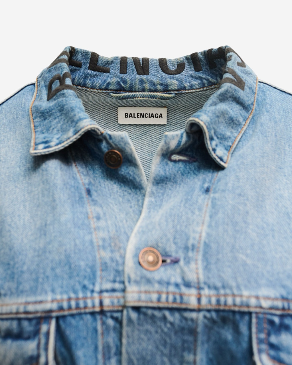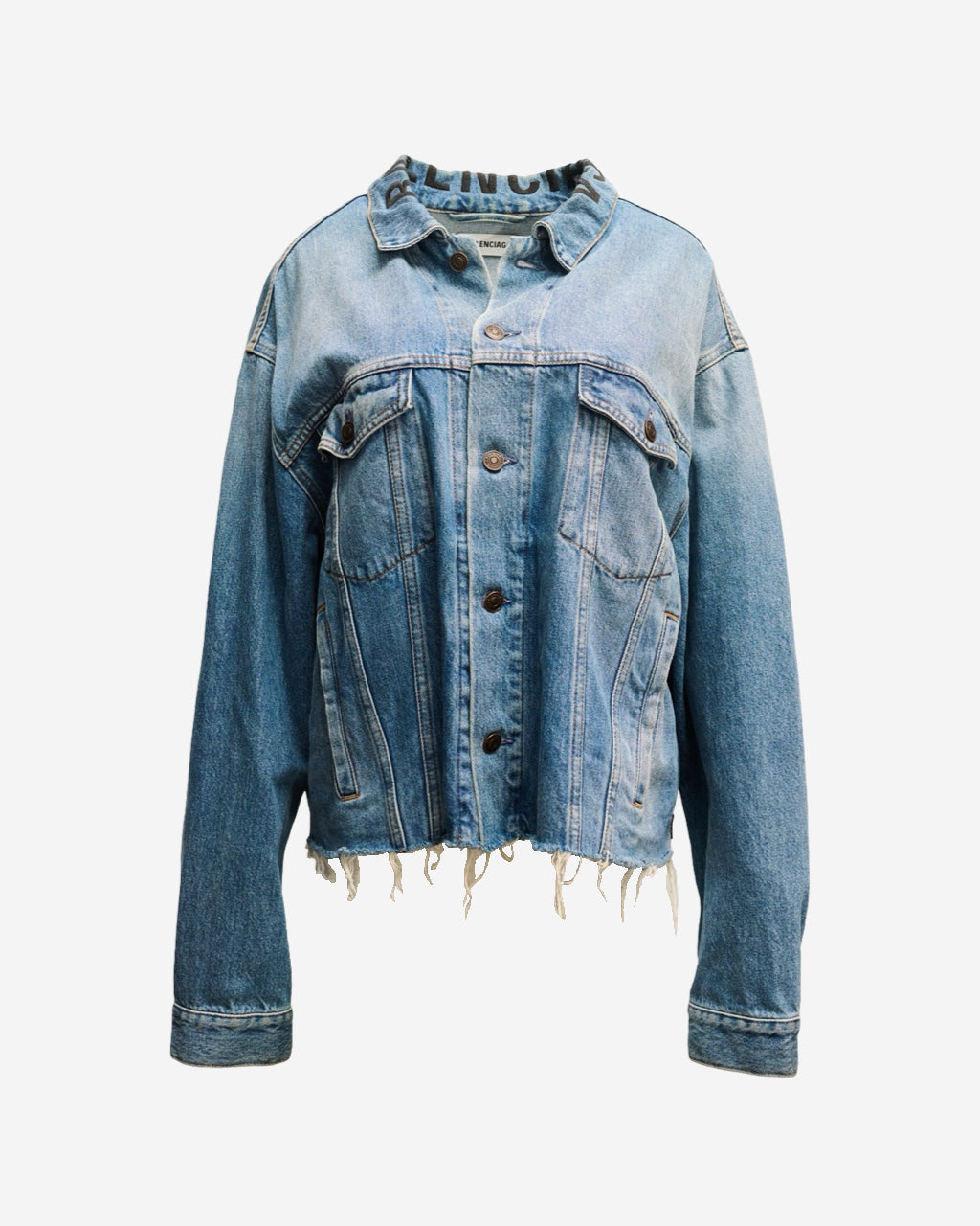 • Descripción: Chamarra Balenciaga en algodón color azul, corte recto, detalle de fringe, ajuste con botones frontales, manga larga, bordado de la marca en el cuello en tono negro