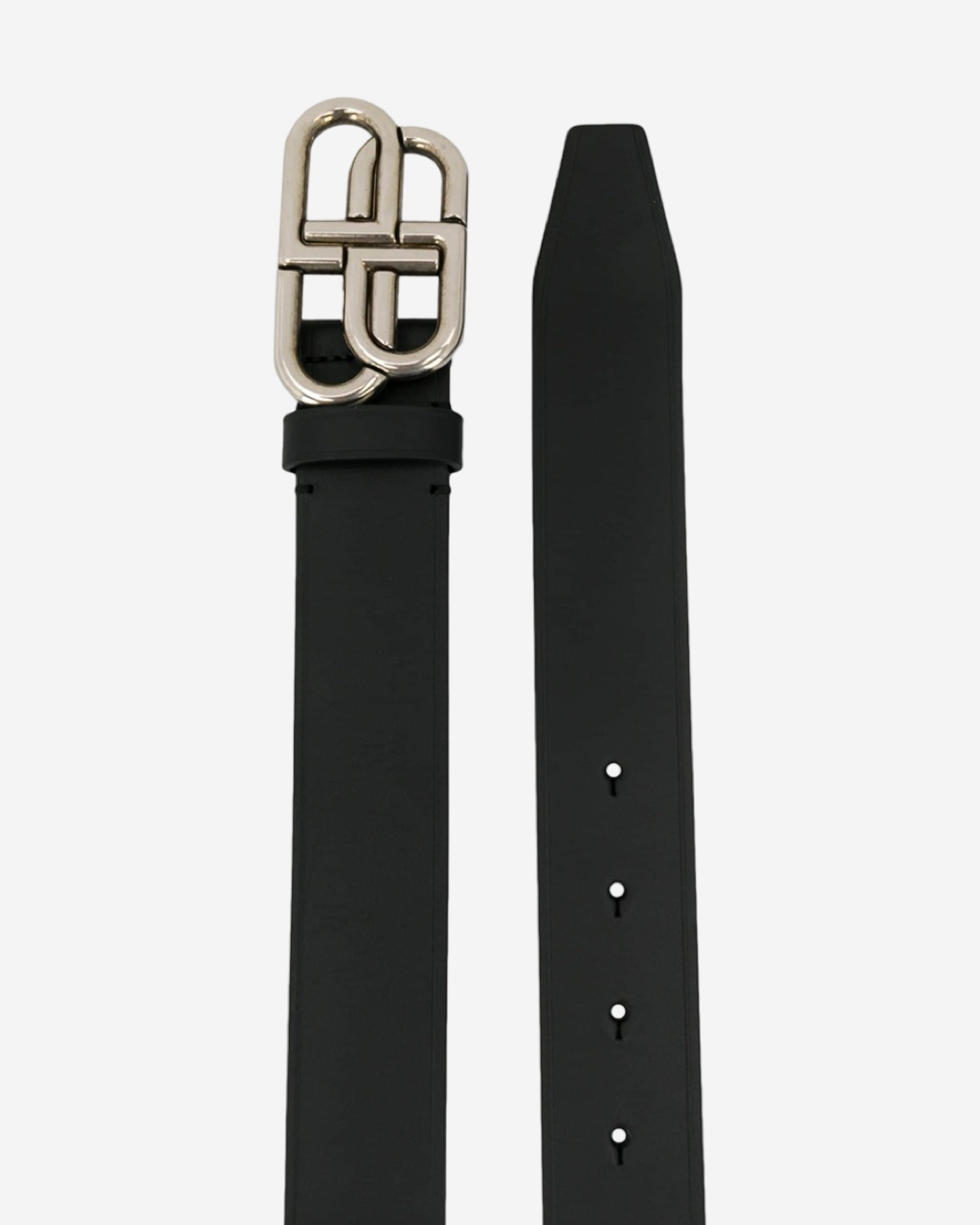 - Descripción: Cinturón con logo BB en metal, hardware color plateado, piel en color negro