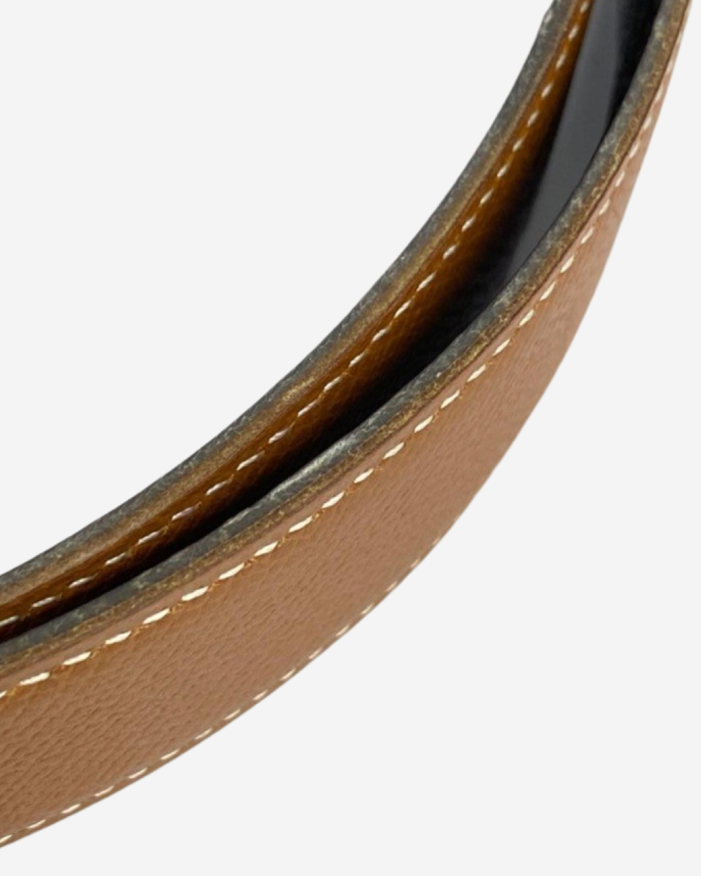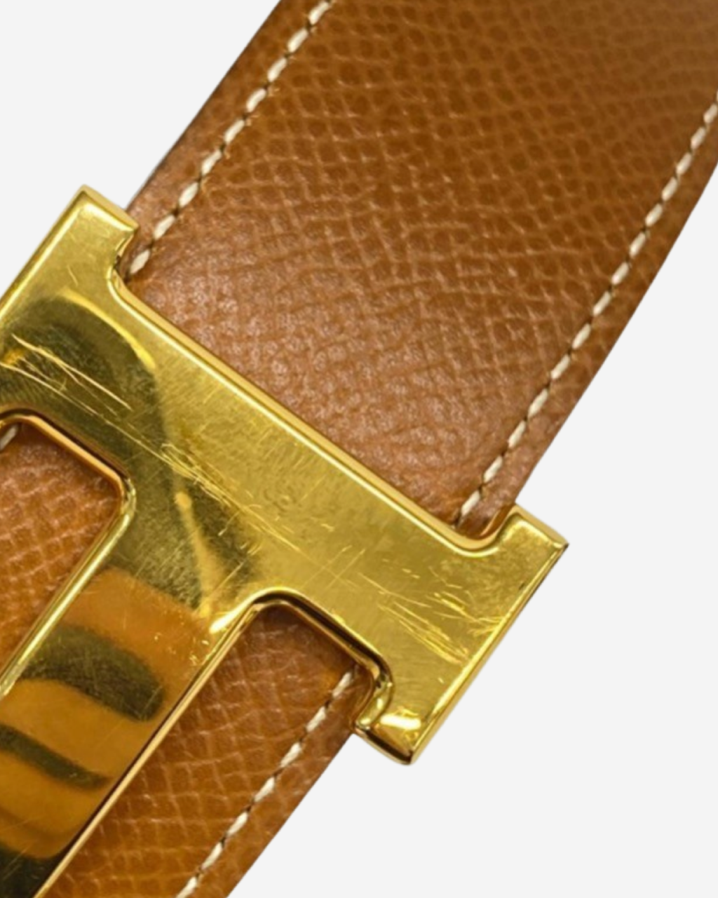 • Descripción: Cinturón de piel en color café y reverso negro, con hebilla de logo característico "H" en color dorado.