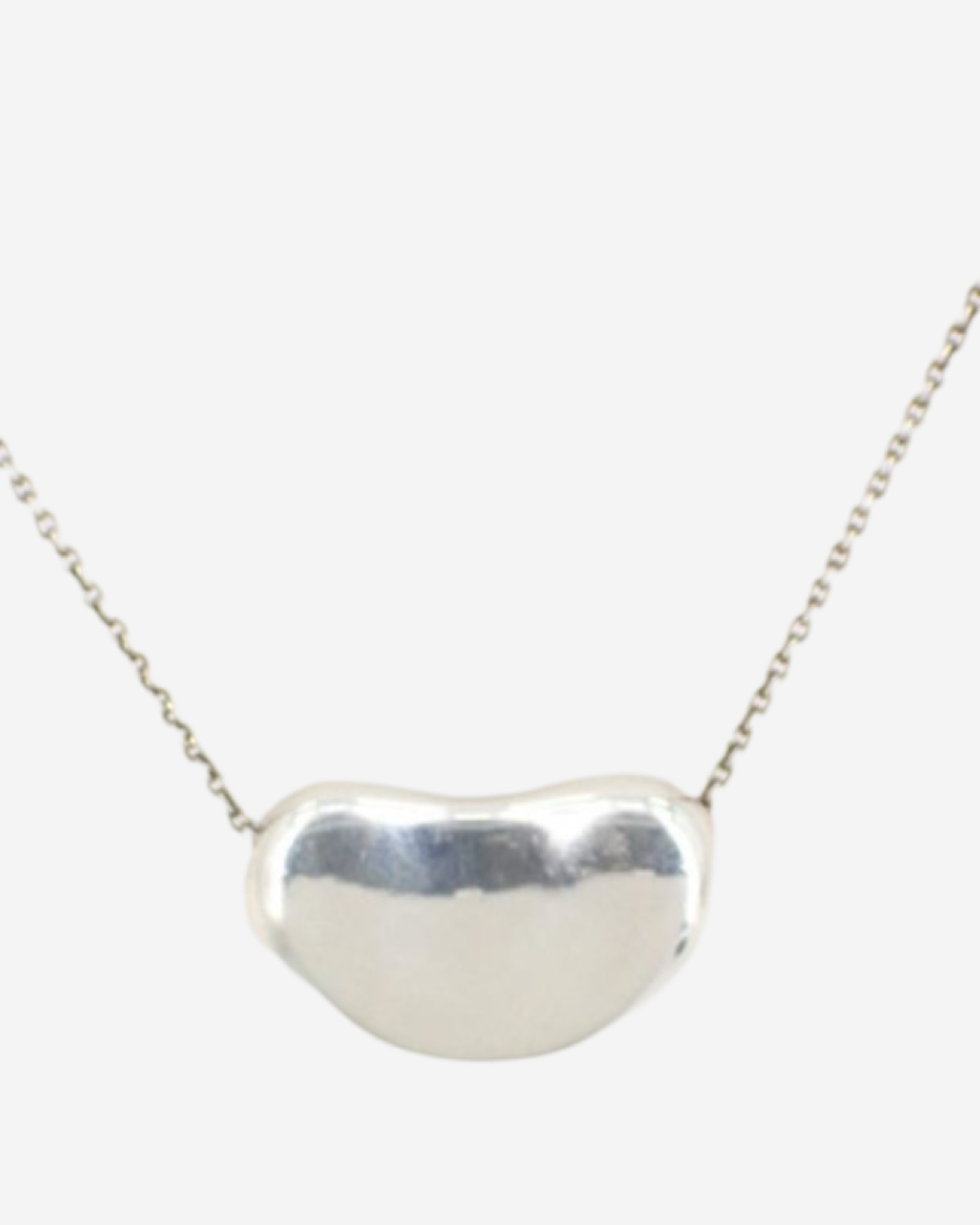 - Descripción: Collar en colaboración con Elsa Peretti en plata con dije bean característico, cadena delgada, broche de langosta