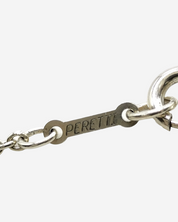 - plata con dije bean característico, cadena delgada y corta tipo choker, broche de langosta