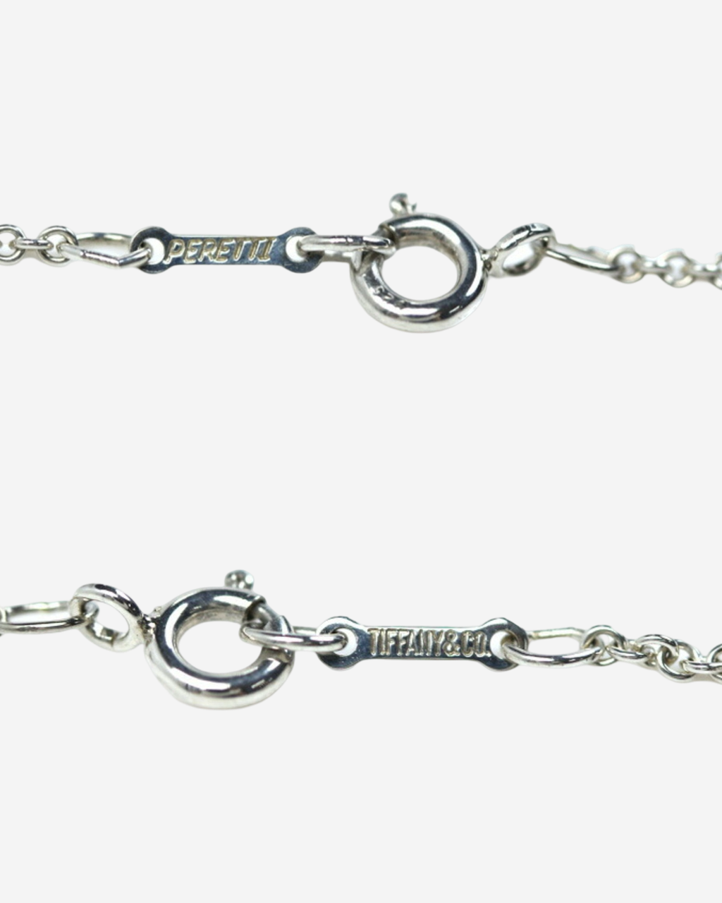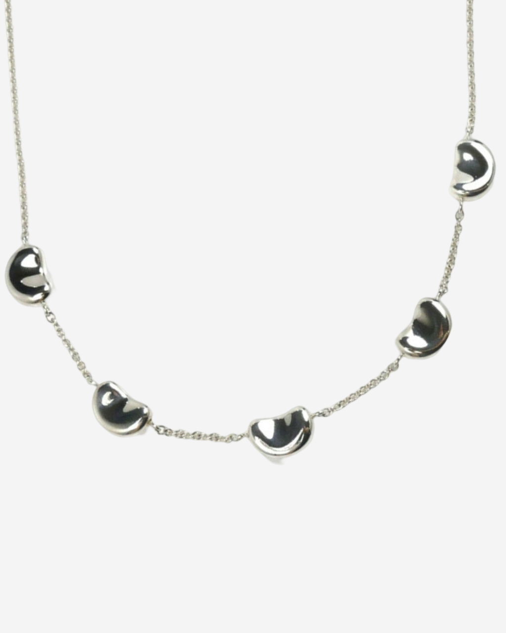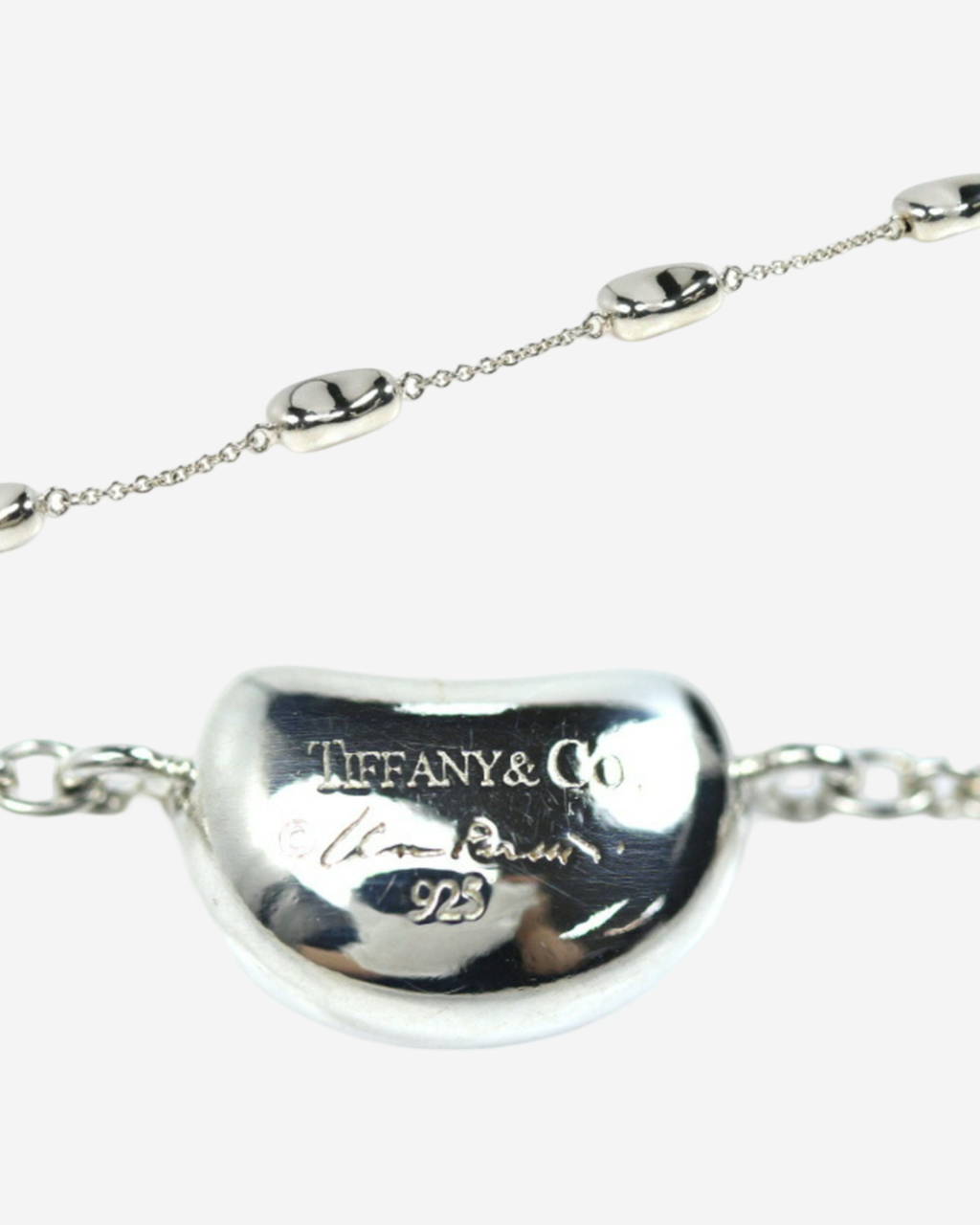 - Descripción: Collar en colaboración con Elsa Peretti en plata con dijes beans característico, cadena delgada, broche de langosta