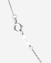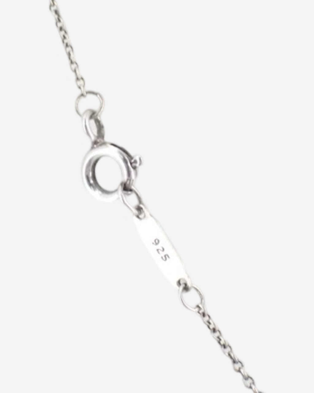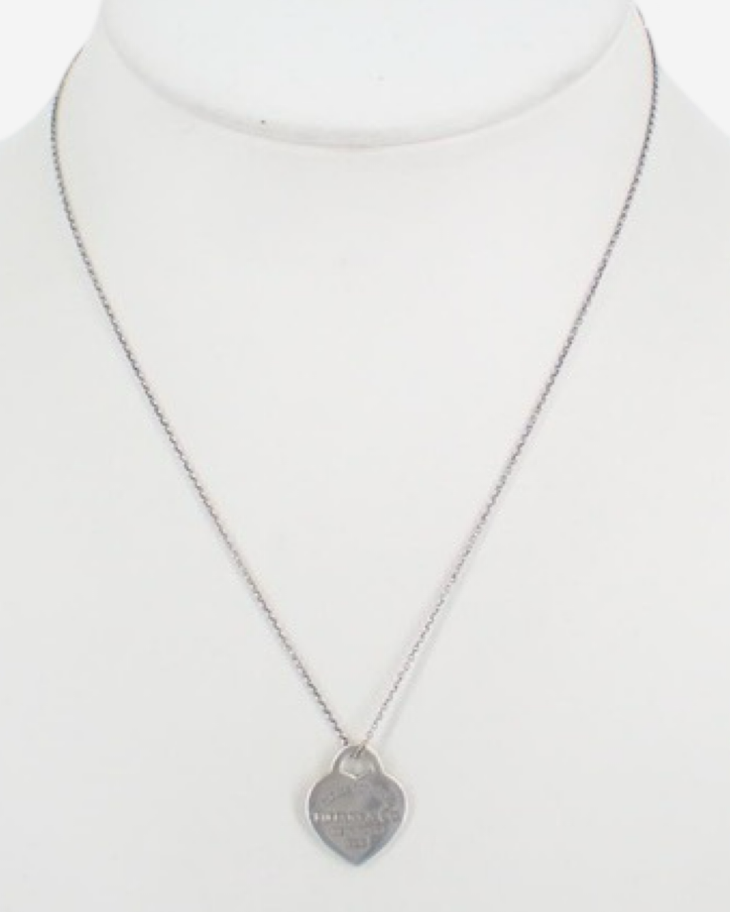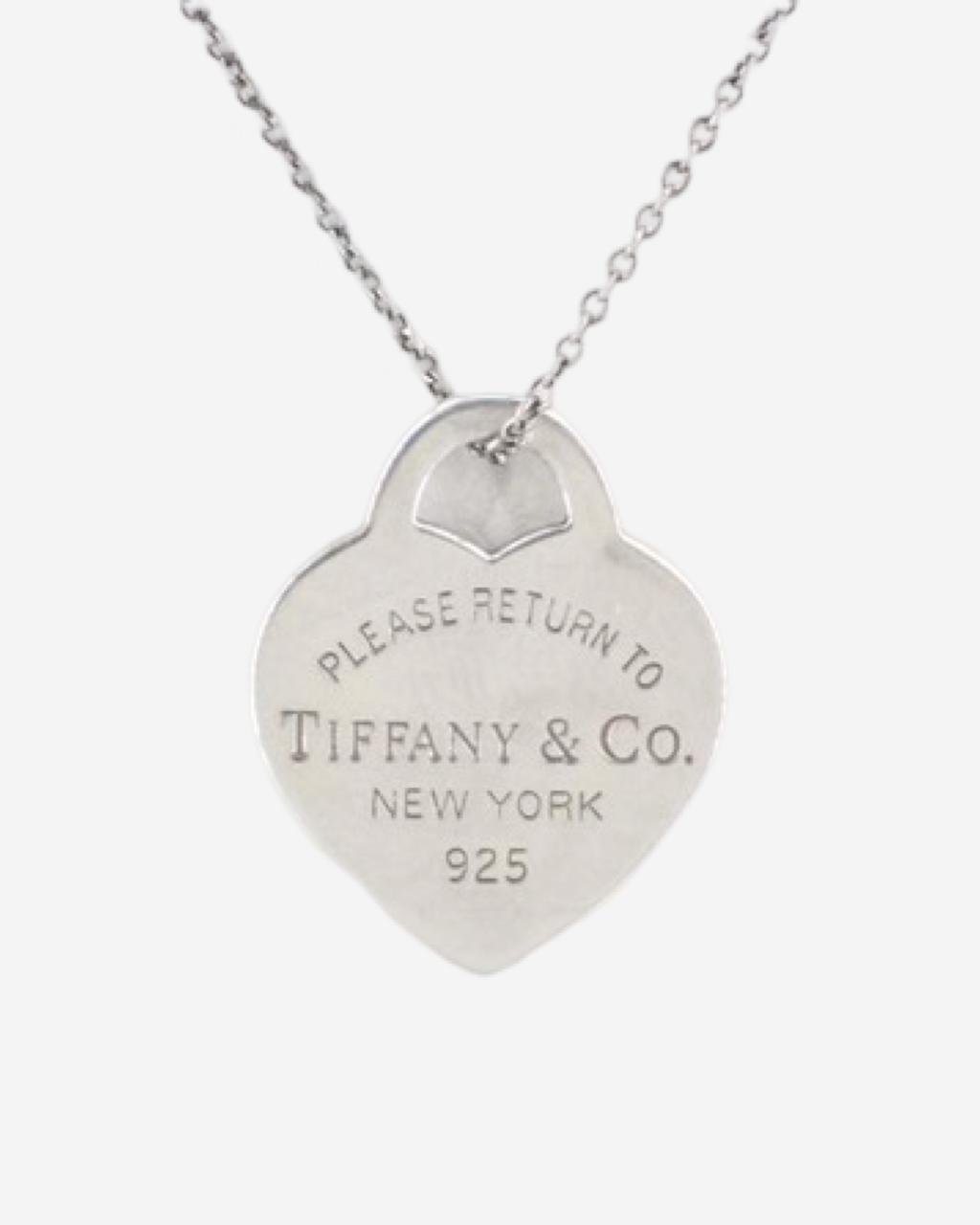 - Descripción: Collar largo con cadena de beads en plata, colgante en forma de corazón con grabado característico