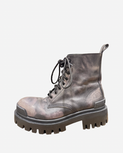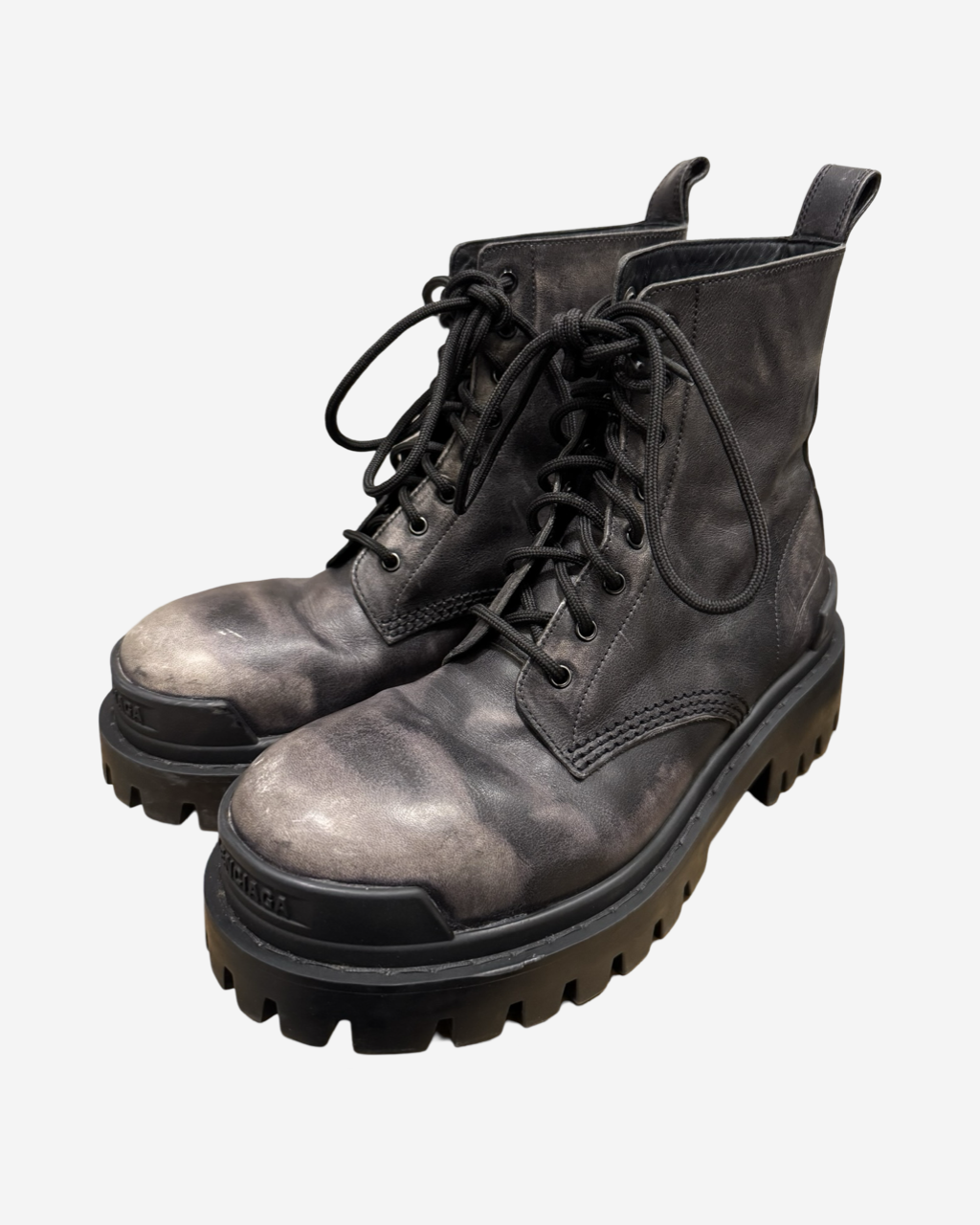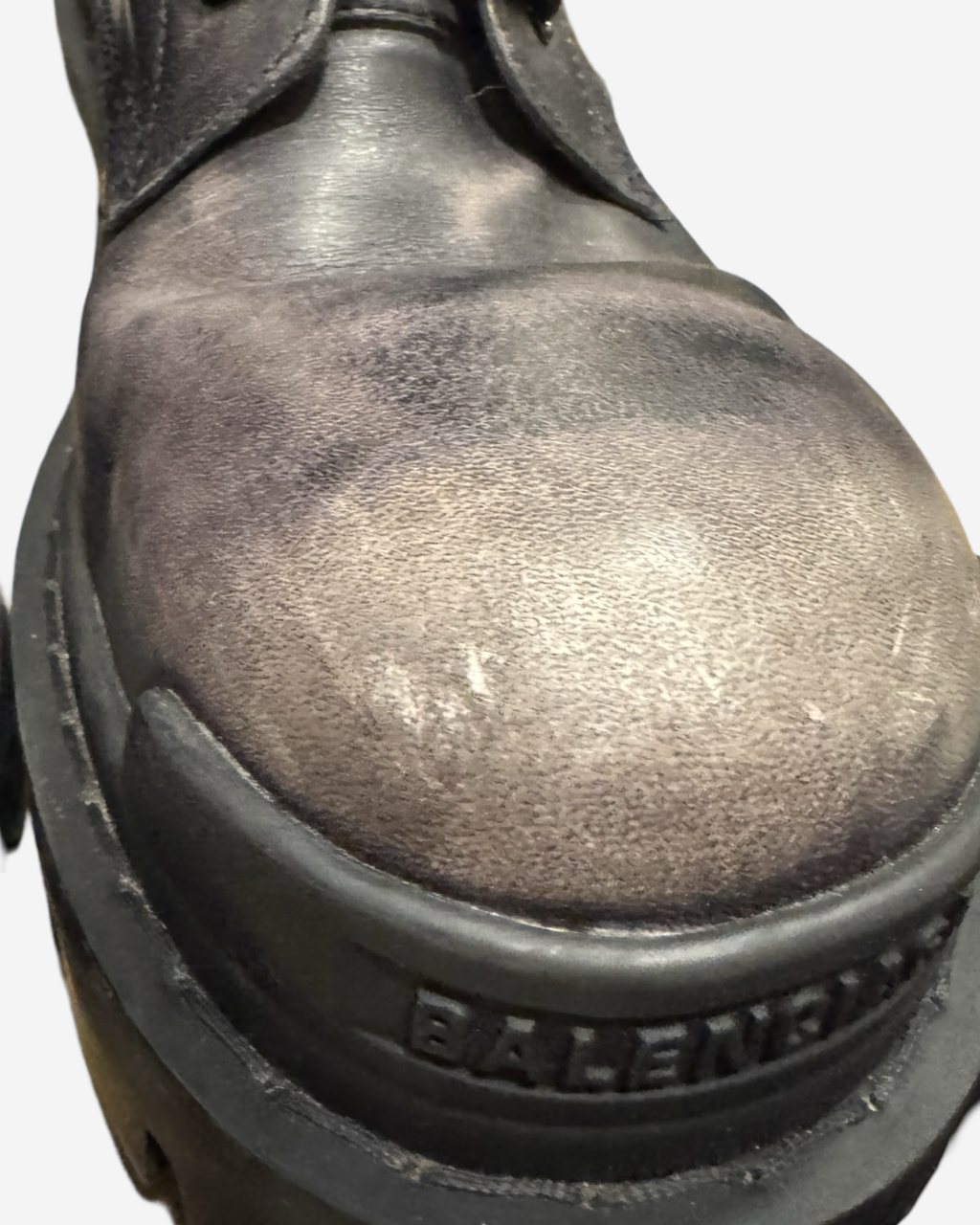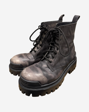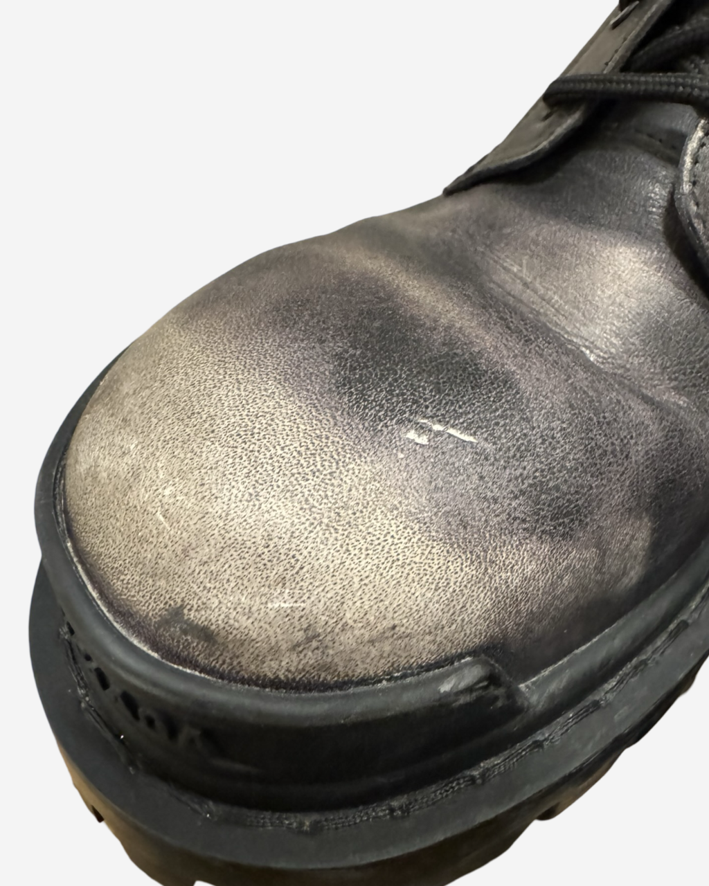 - Descripción: Botas en color gris desgastado, puntera oversized redonda, suela chunky de goma en tono negro