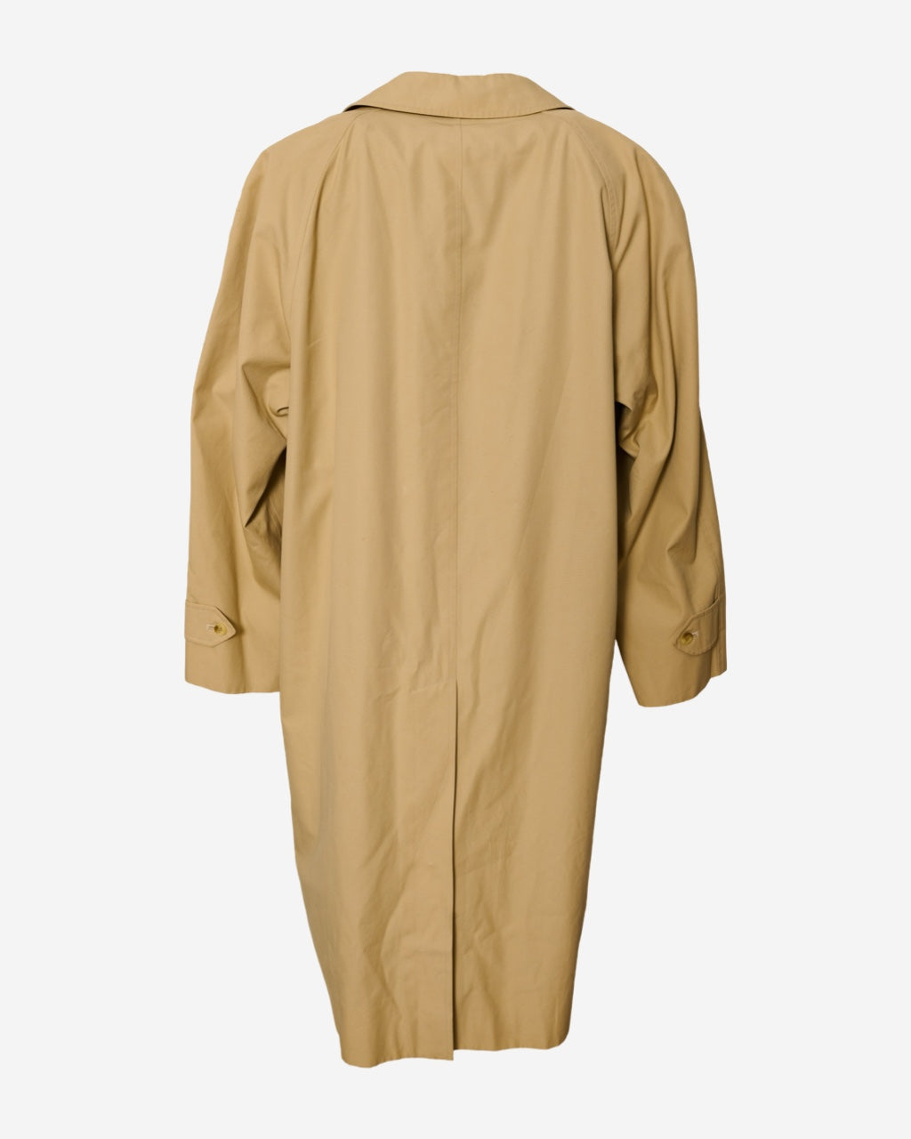 • Descripción: Gabardina Burberry en color beige, manga larga, largo medio, corte recto, ajuste con botones frontales, forro interior nova check, bolsillos en los laterales