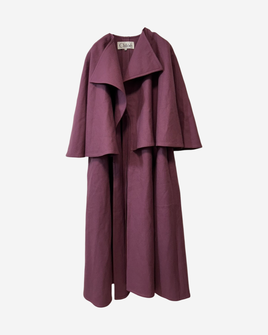• Descripción: Gabardina en color vino larga, mangas acampanadas, cuello oversized