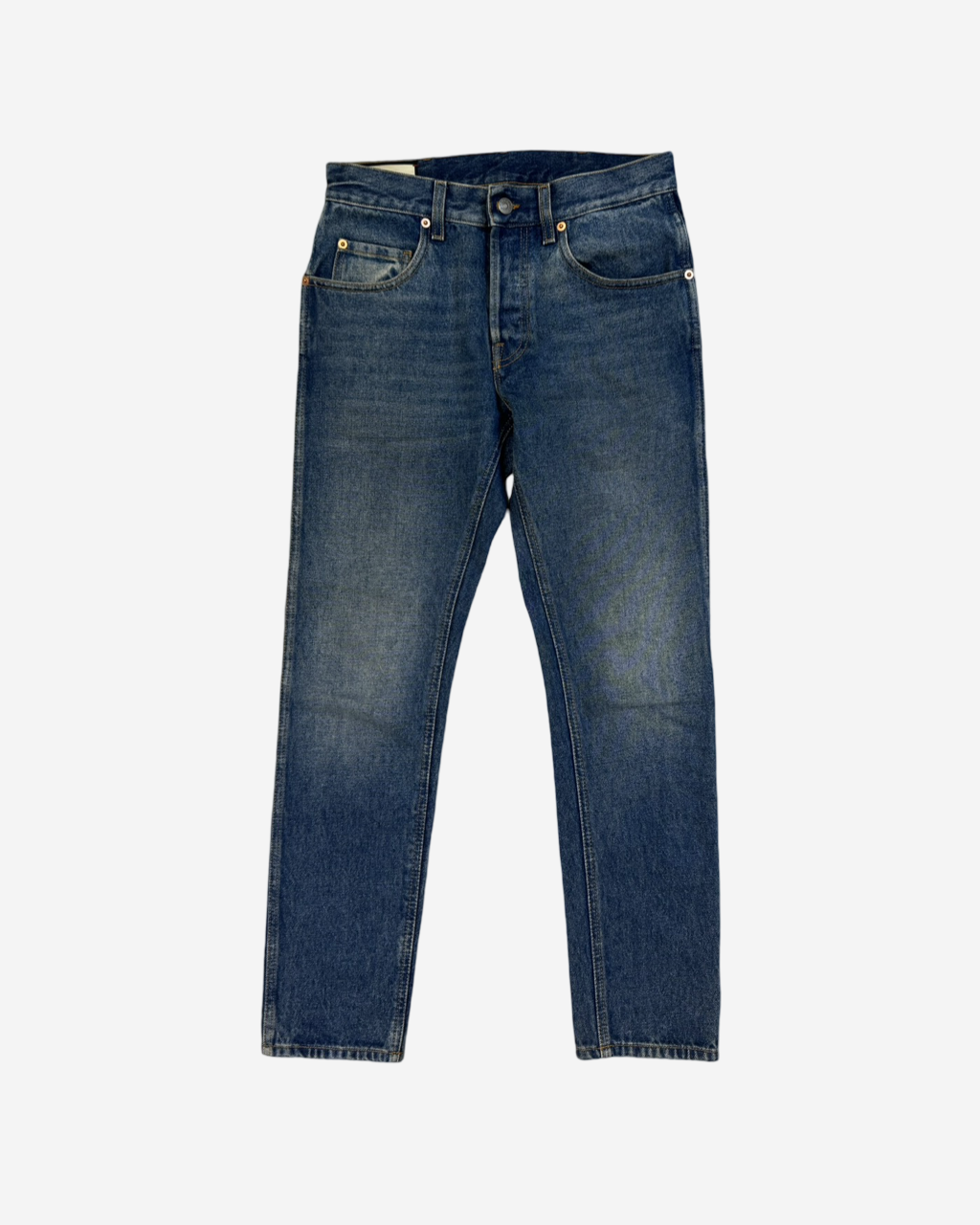 • Descripción: Jeans de denim color azul, corte skinny, ajuste con botón, largo al tobillo