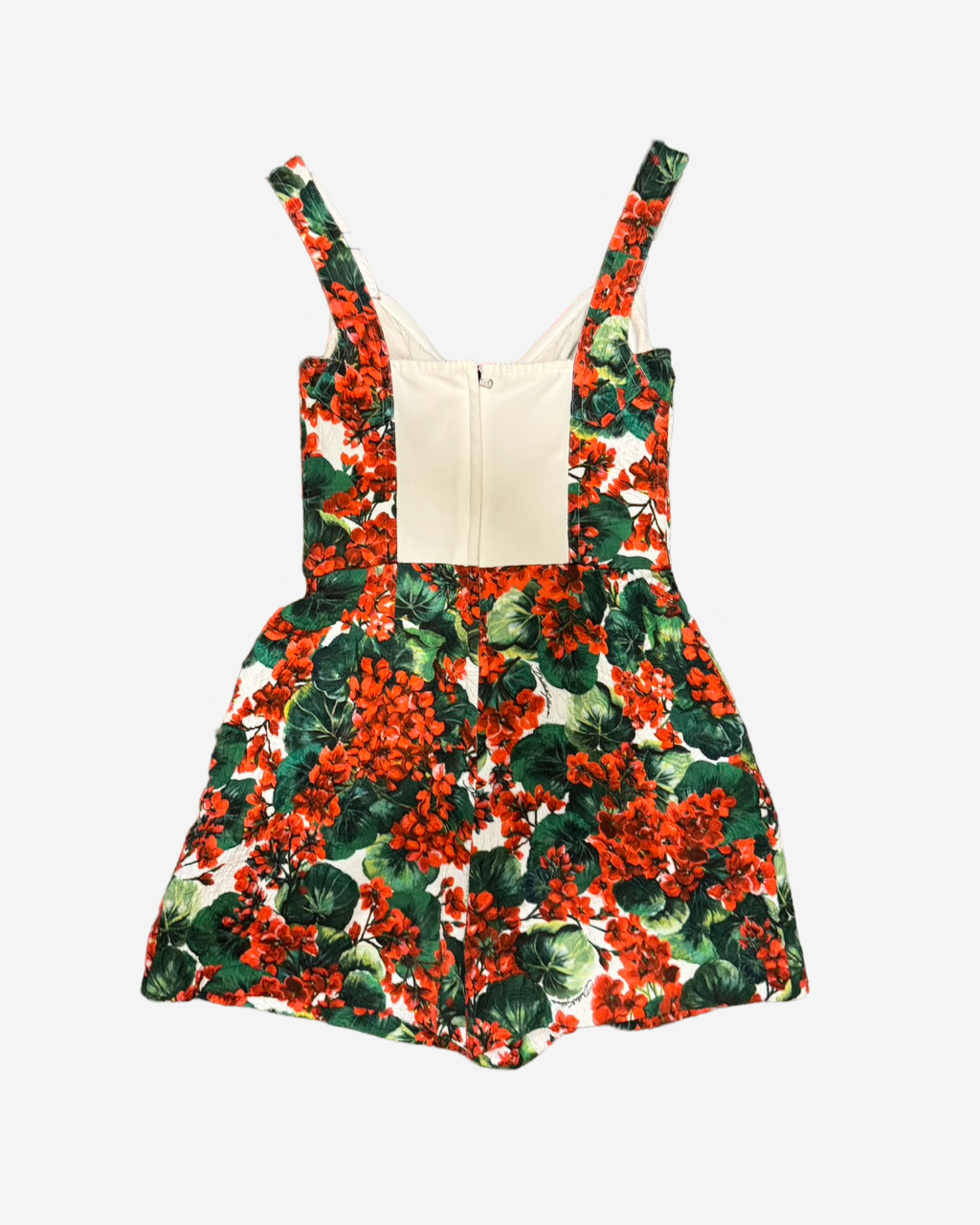 • Descripción: Jumpsuit en print de flores con bordado, cuello de corazón, ajuste con zipper trasero