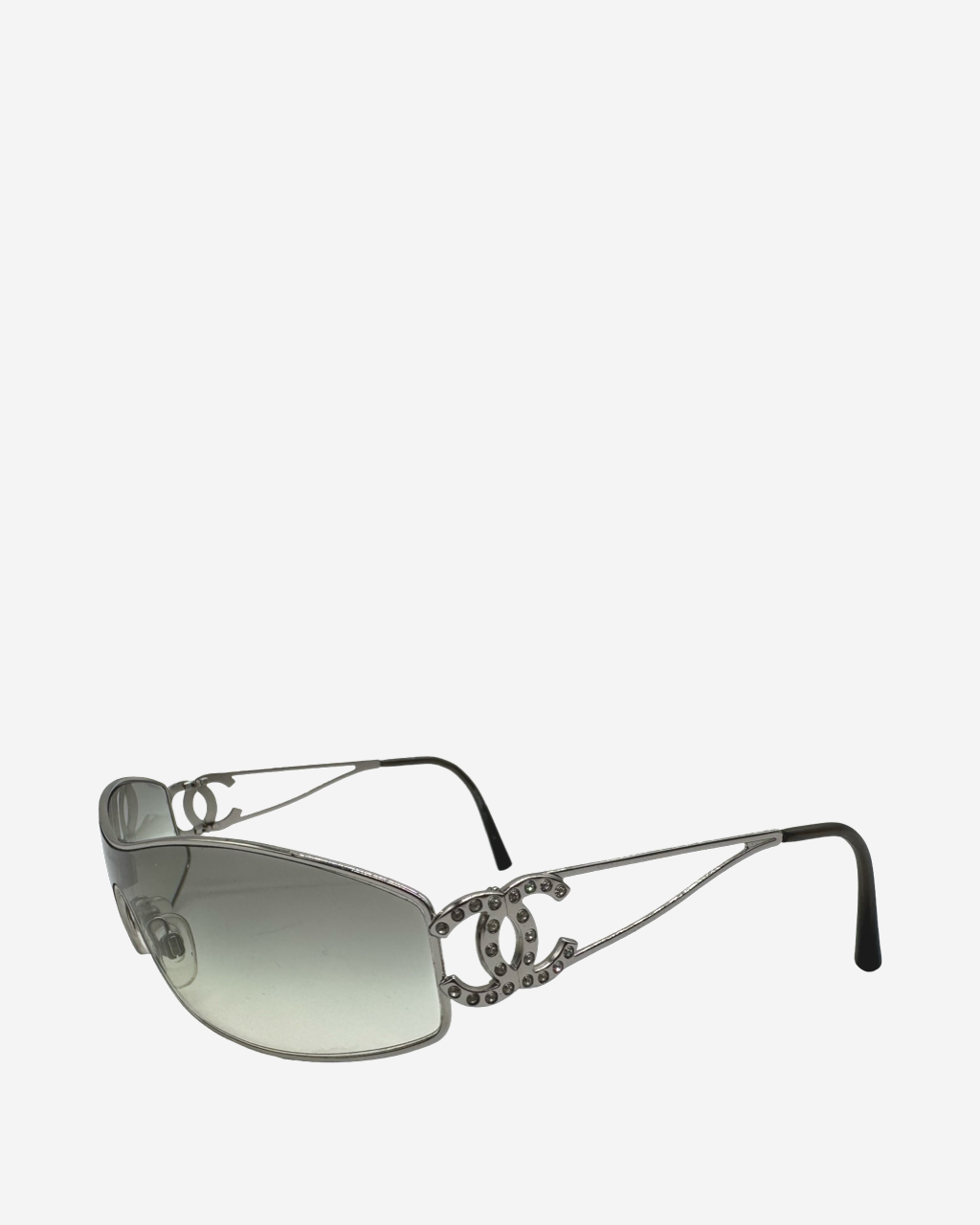 • Descripción: Lentes de sol en color plateado, logo CC con rhinestones, logo grabado en el interior