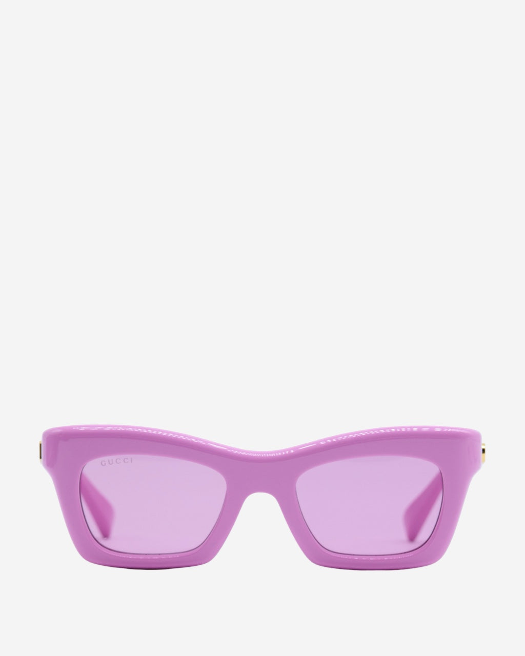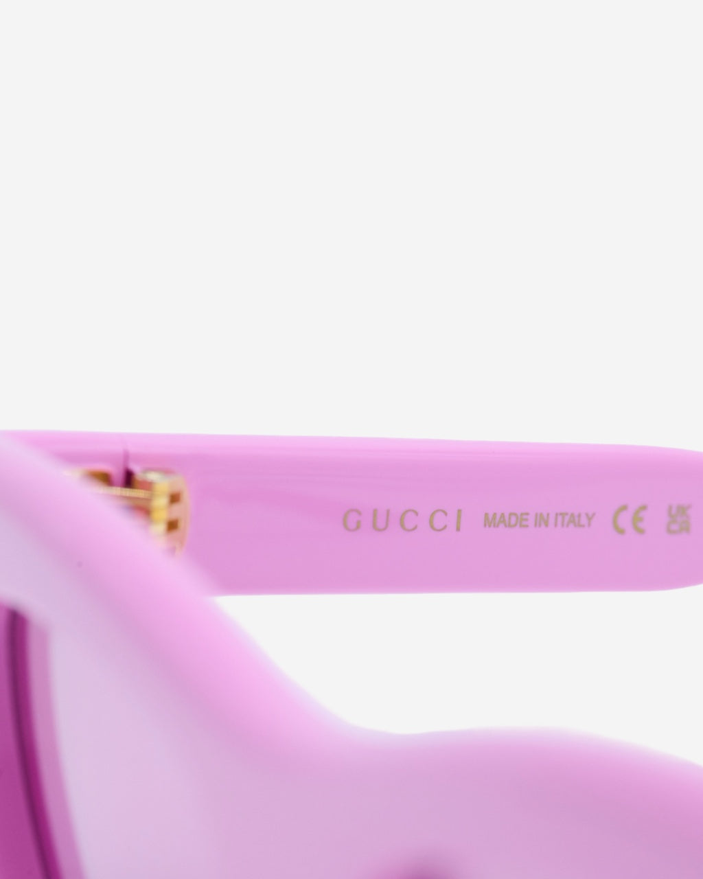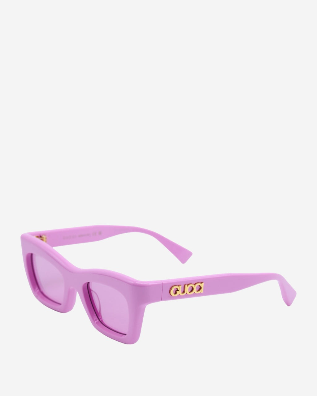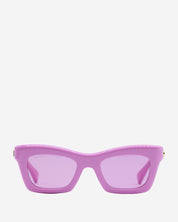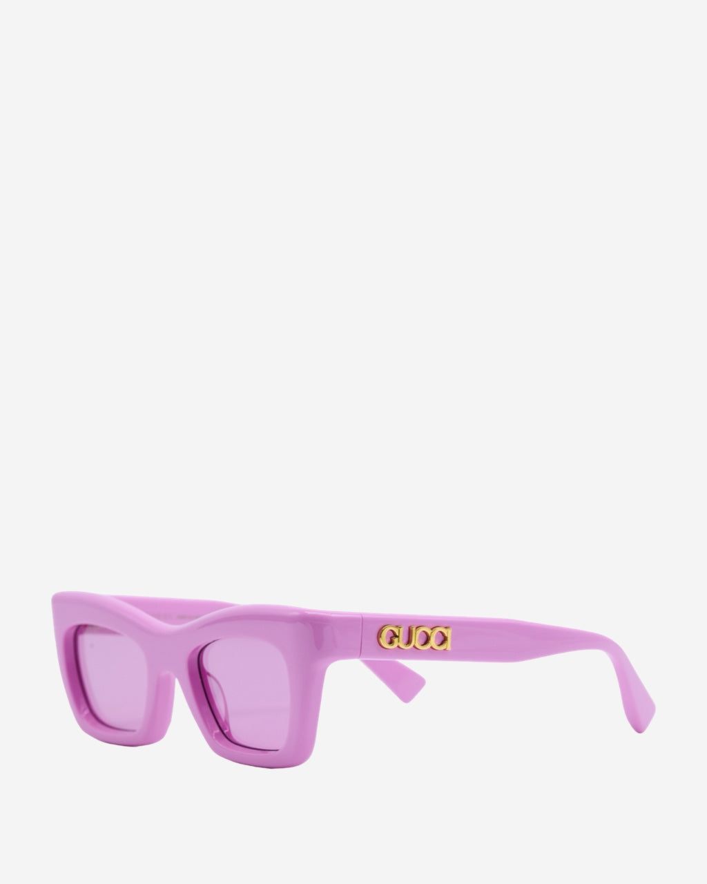 - Descripción: Lentes de Sol en Acetato color rosa, forma semi-cuadrada, placa de logo en los laterales, hardware en tono dorado