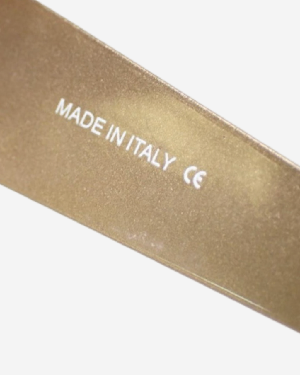 - Descripción: Lentes de sol en metal color dorado, forma rectangular, logo característico en los laterales