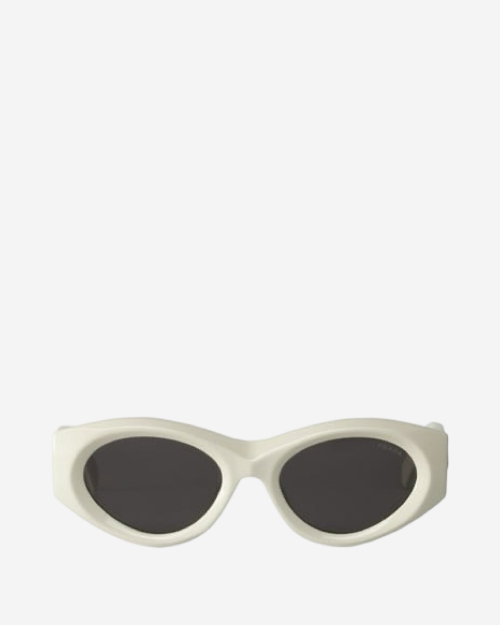 • Descripción: Lentes de sol en acetato en color blanco, micas en color negro, logo característico en los laterales, hardware color plateado
