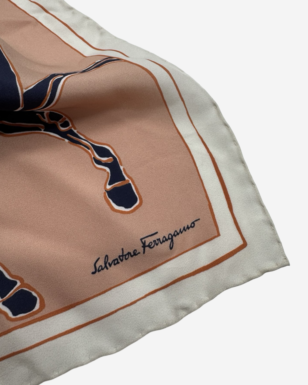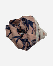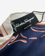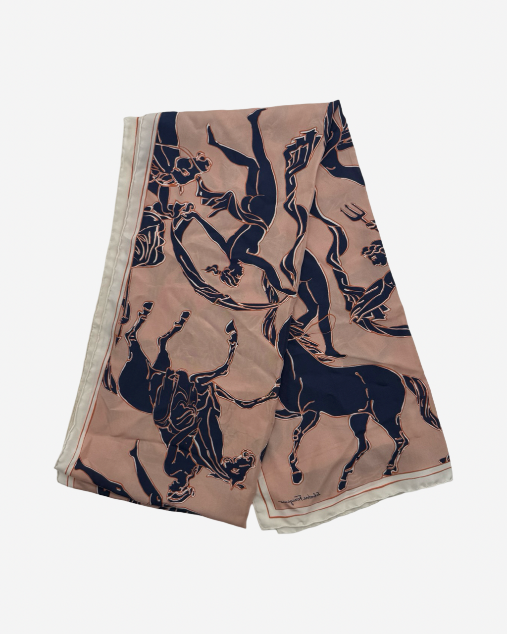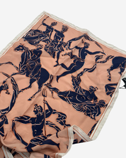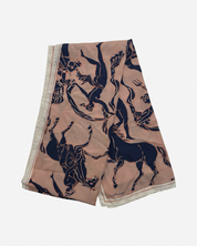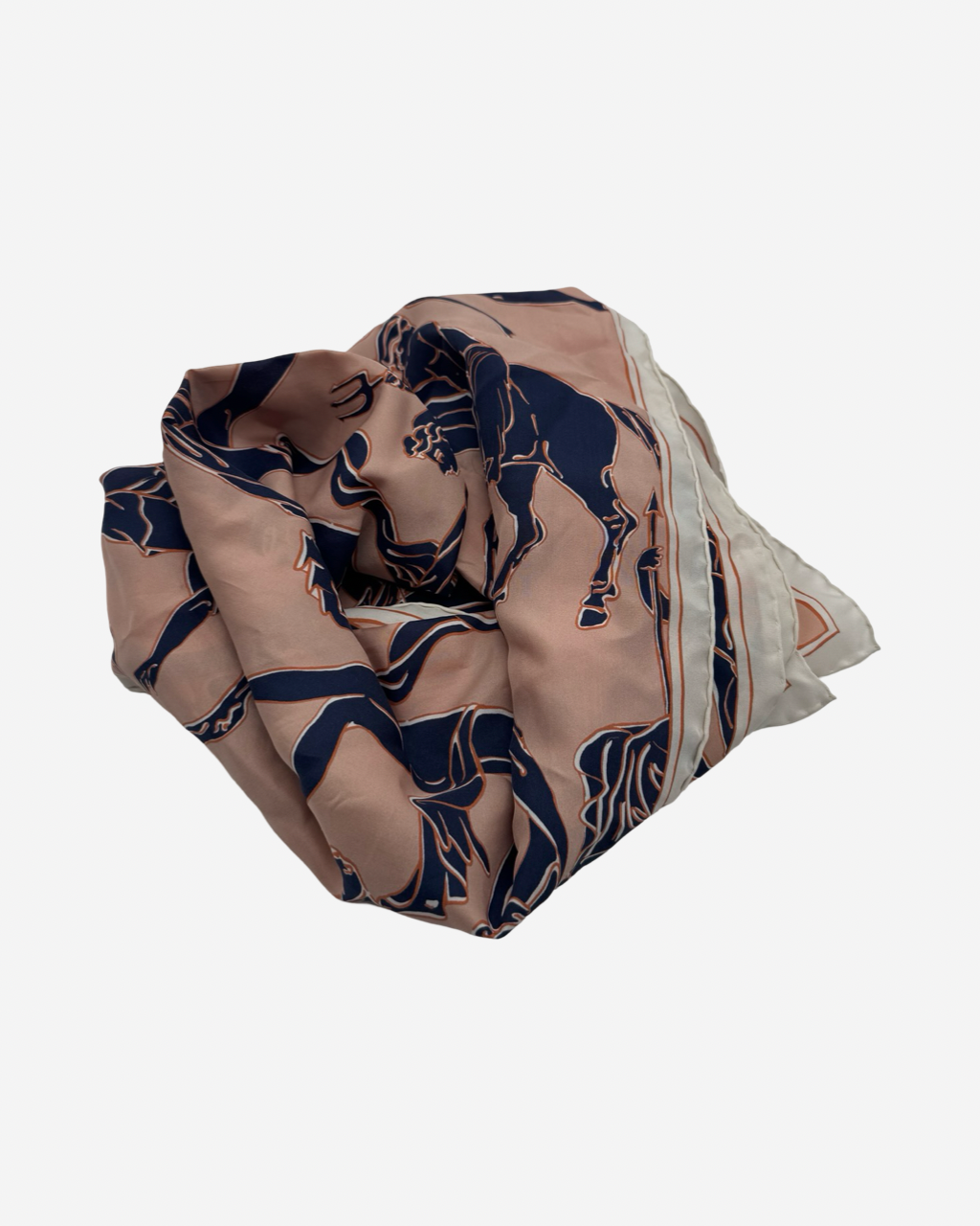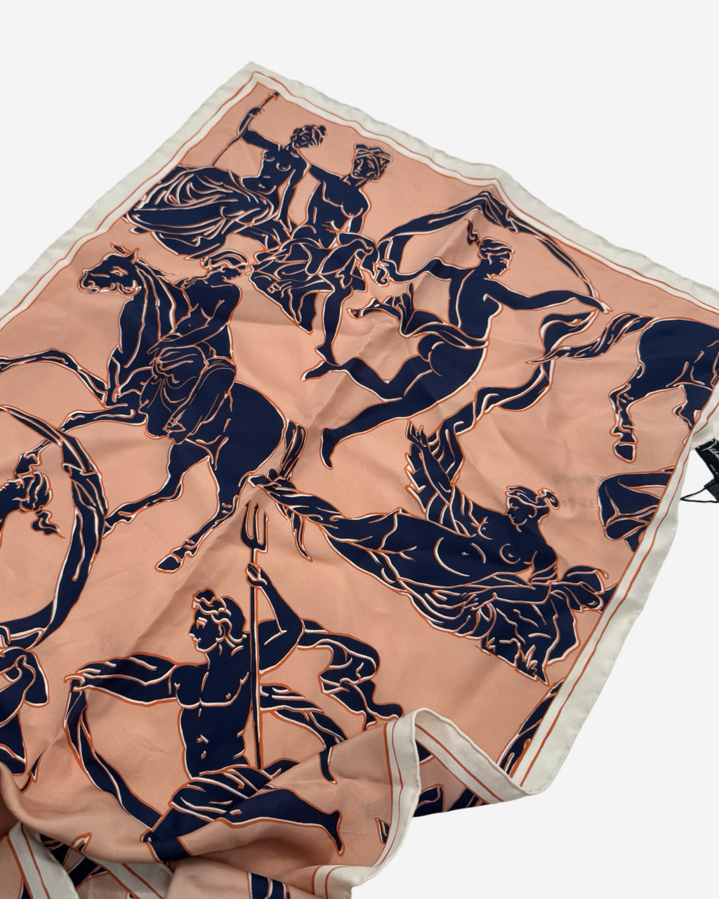 - Descripción: Mascada de seda en motivo neptuno, print en color azul, logo grabado