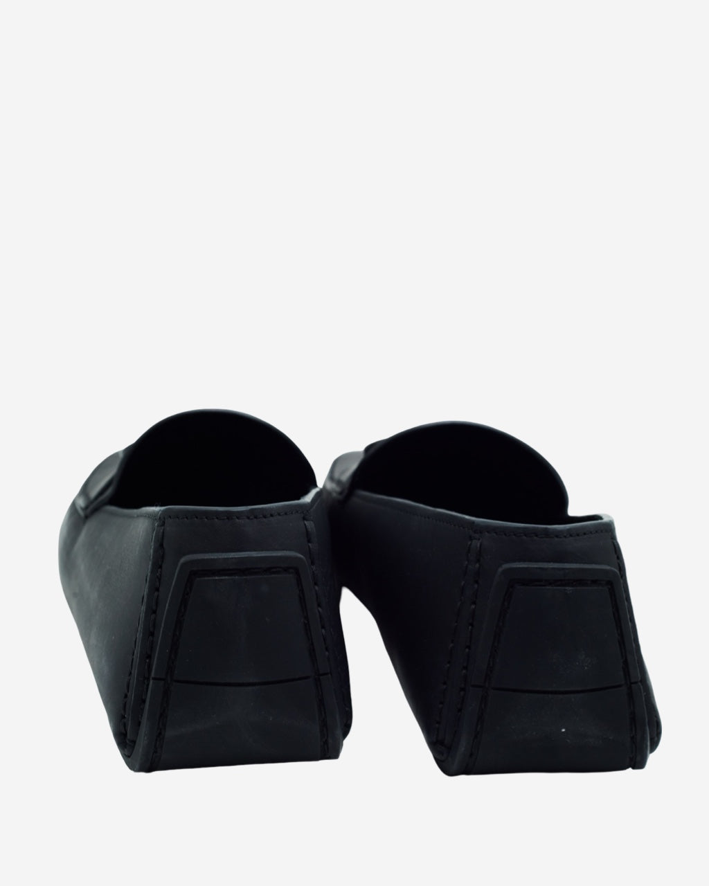 - Descripción: Mocasines Ferragamo en piel color negro, puntera cuadrada, logo en la parte frontal, slip on, suela de goma