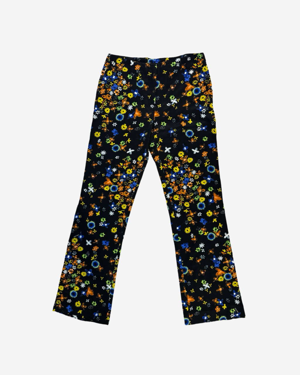 - Descripción: Pantalón con print floral, ajuste con botón a la cintura, corte recto