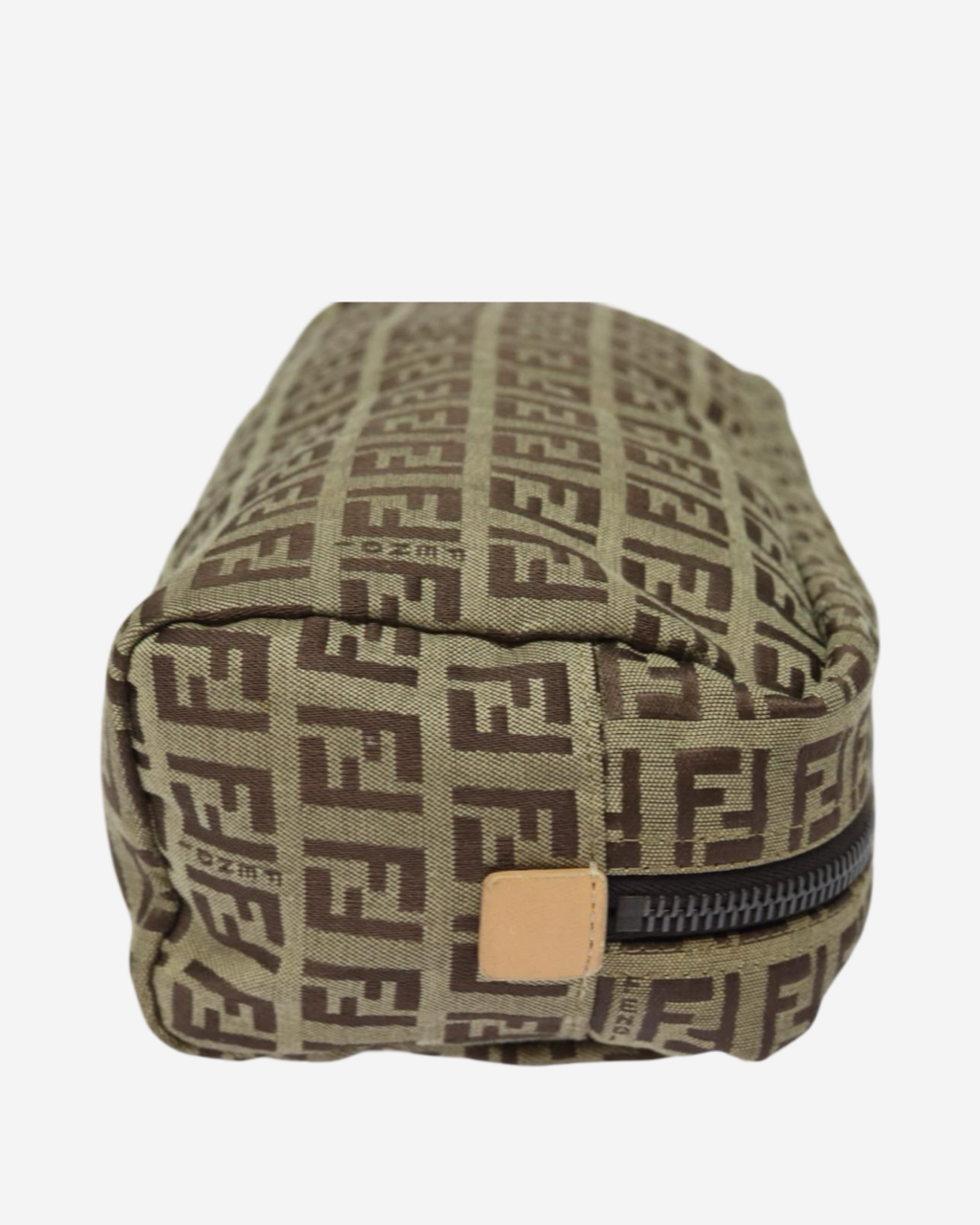 • Descripción: Pouch en  canvas zucchino con cierre al tope, forro interior en tela con bolsillo, hardware color dorado