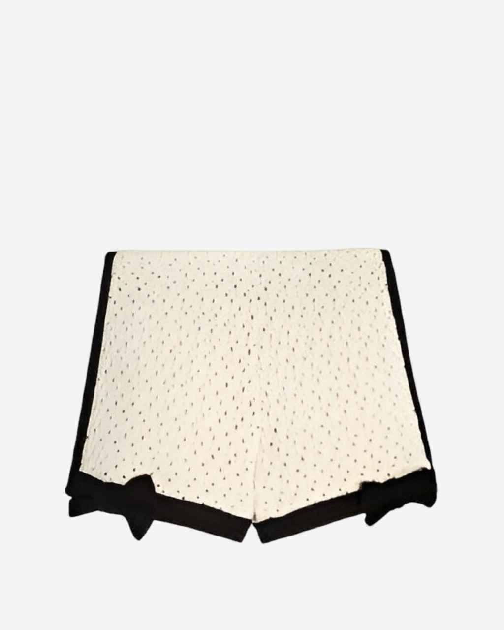• Descripción: Short corto de crochet color blanco con detalles en color negro, moño en la parte inferior