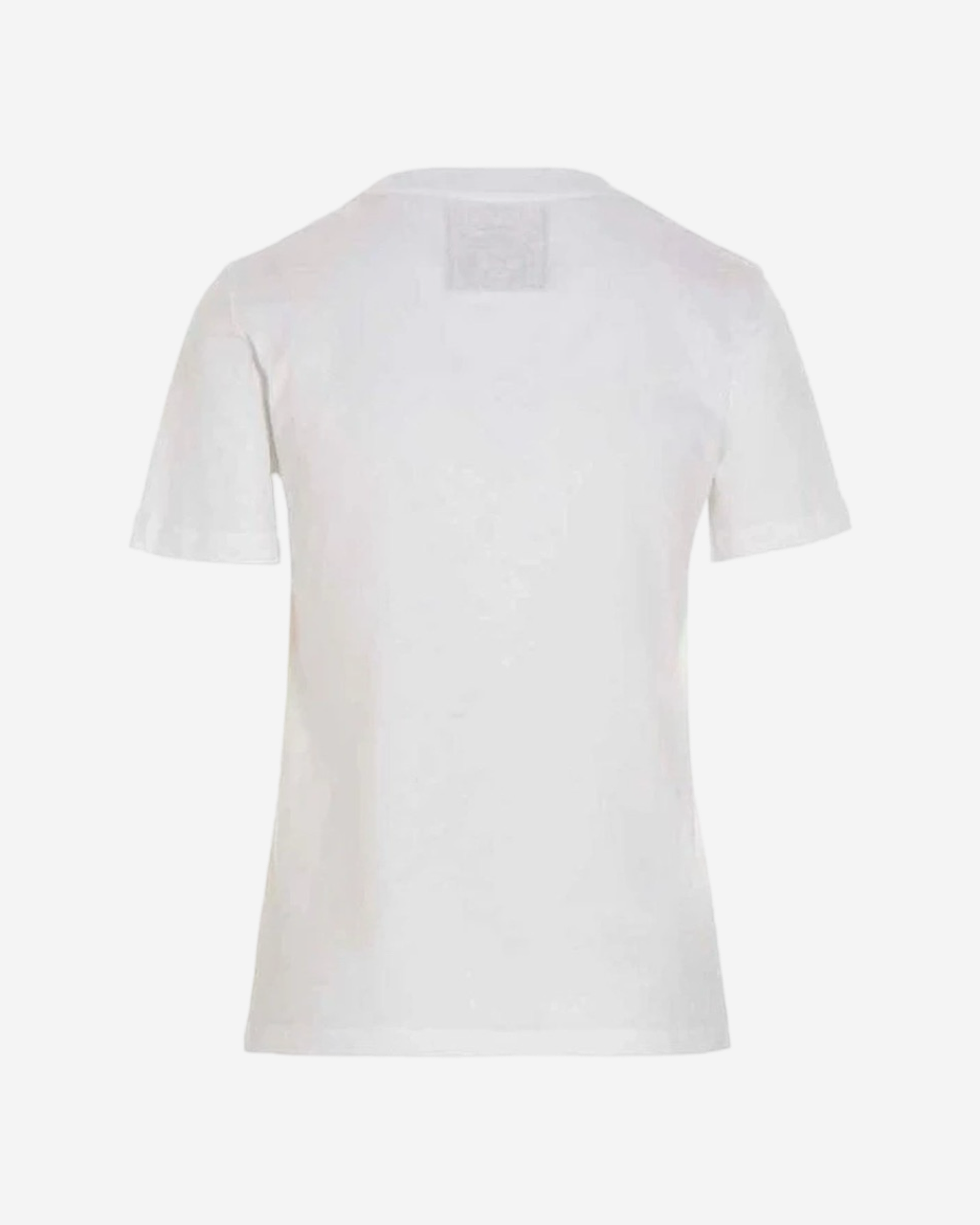 - Descripción: T-Shirt en algodón color blanco, cuello redondo, manga corta, corte relaxed