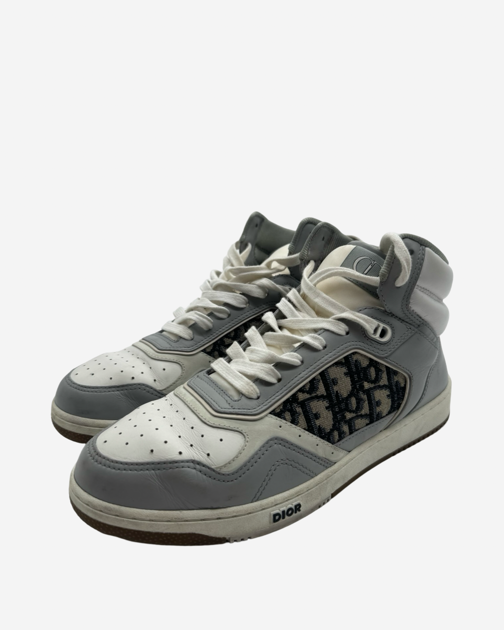 - Descripción: Tenis de bota en piel color gris, páneles en oblique, ajuste con agujetas, suela de goma