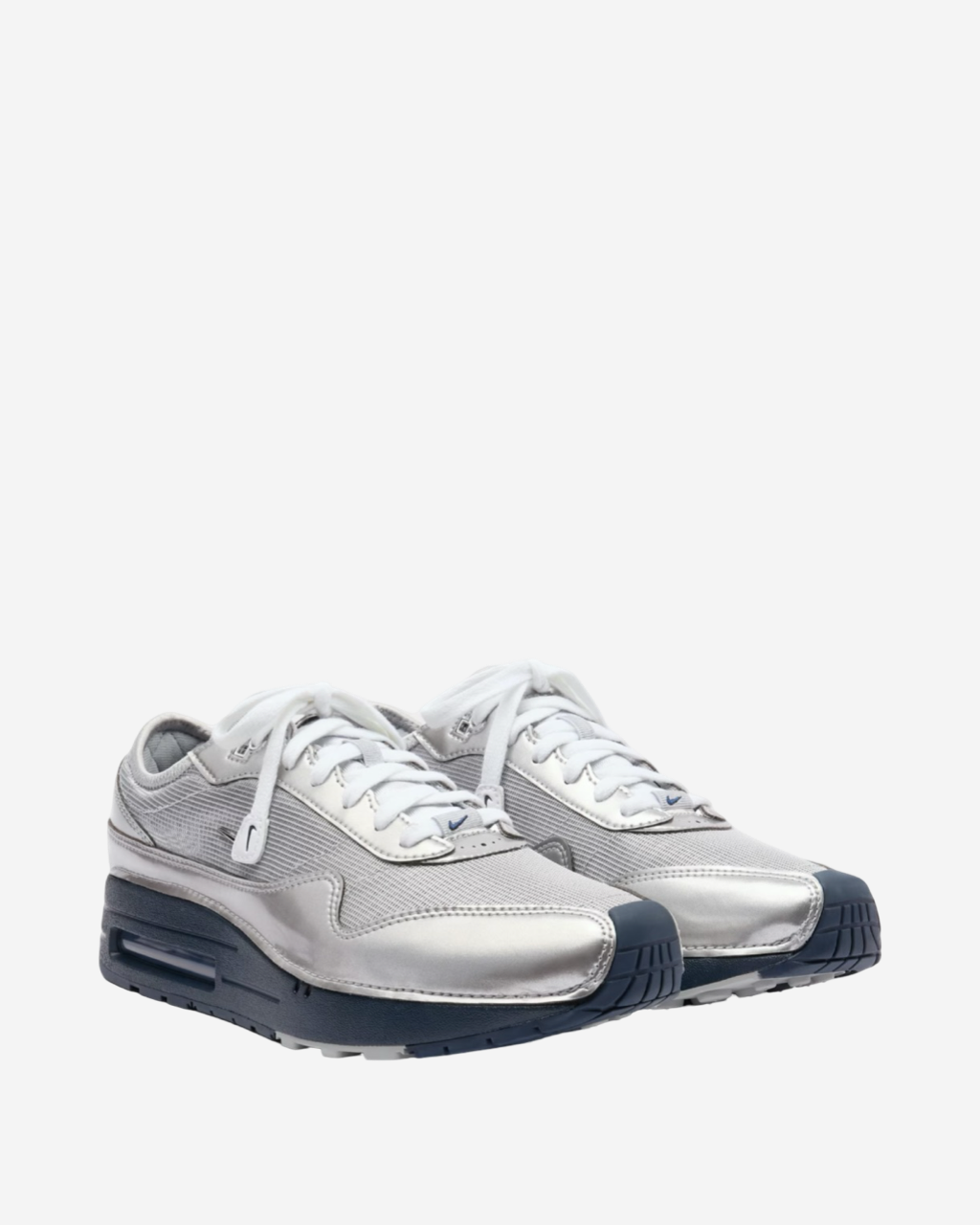 - Descripción: Tenis en color plateado, ajuste con agujetas, suela de goma airmax, logo característico jacquemus en la lengueta