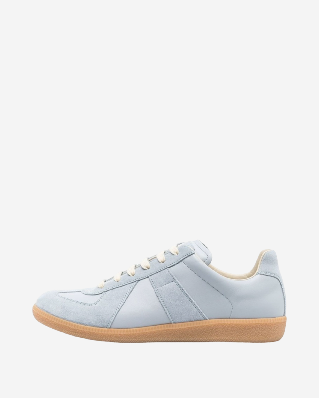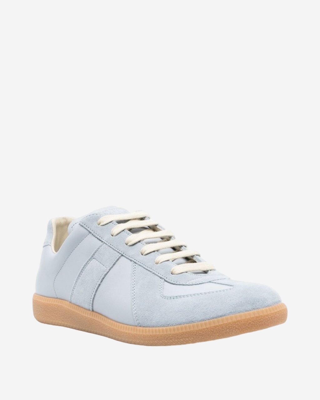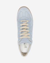 • Descripción: Tenis Maison Margiela en gamuza color azul cielo, puntera redonda, ajuste con agujetas, suela de goma en color camel