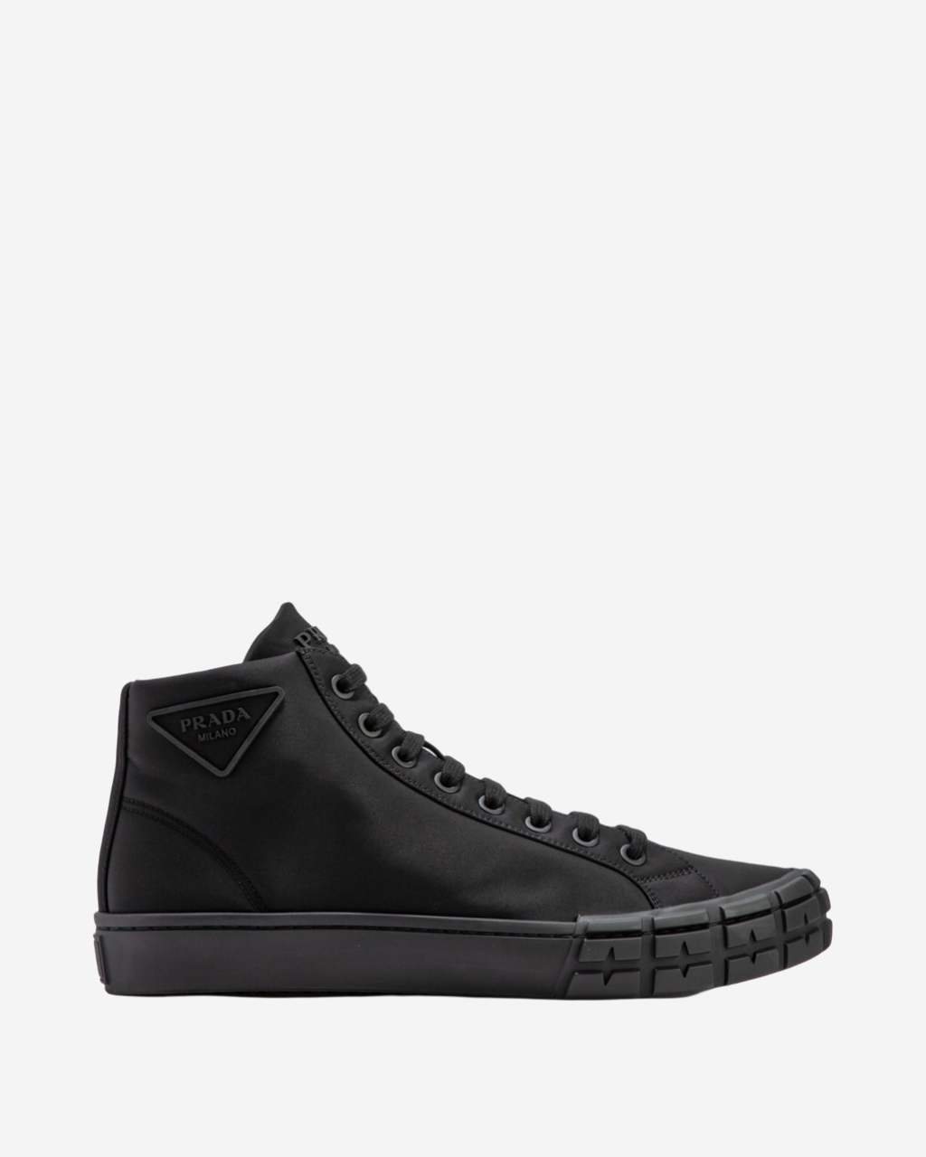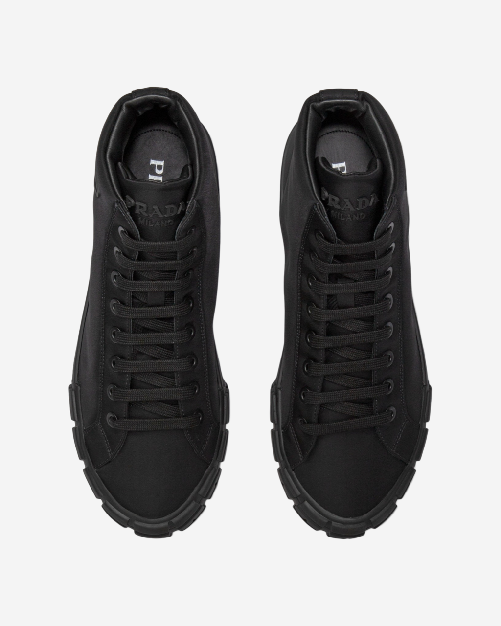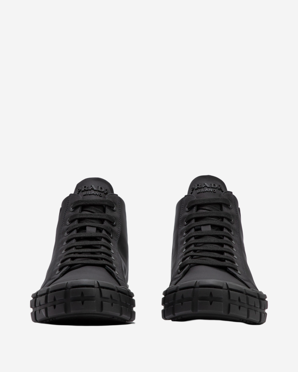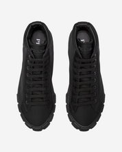 - Descripción: Tenis Oversized en nylon color negro, ajuste con agujetas, suela de goma, puntera redonda