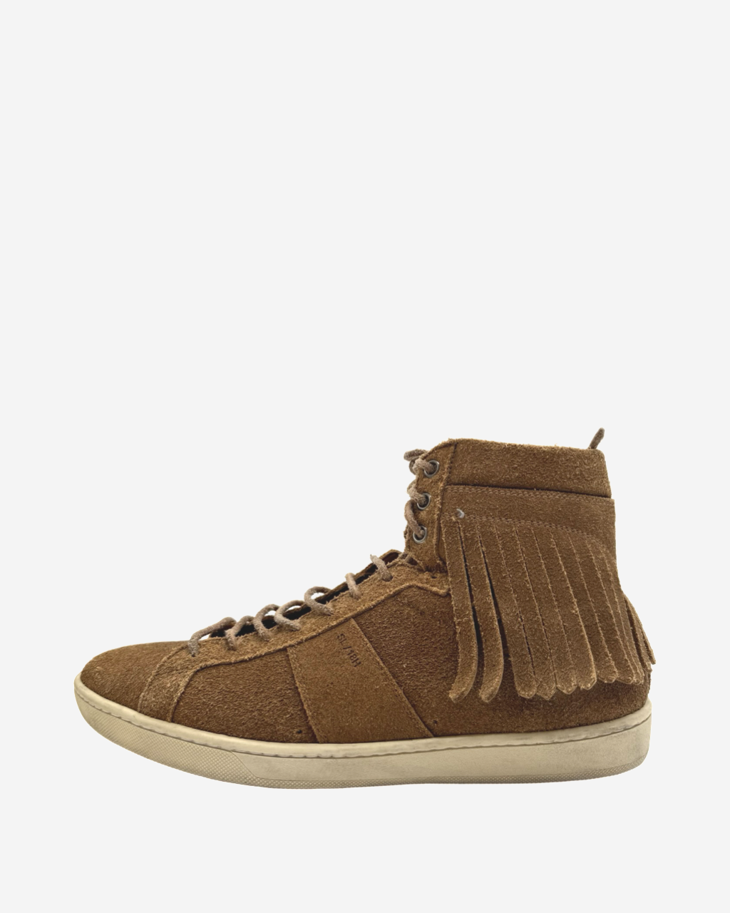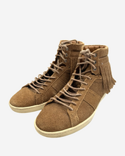 • Descripción: Tenis altos en gamuza color camel, puntera redonda, ajuste con agujetas, suela de goma