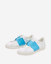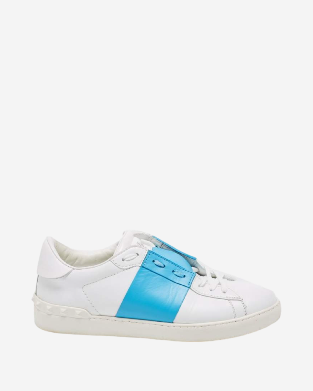 - Descripción: Tenis de piel con ajuste de agujetas, colorblock en color azul