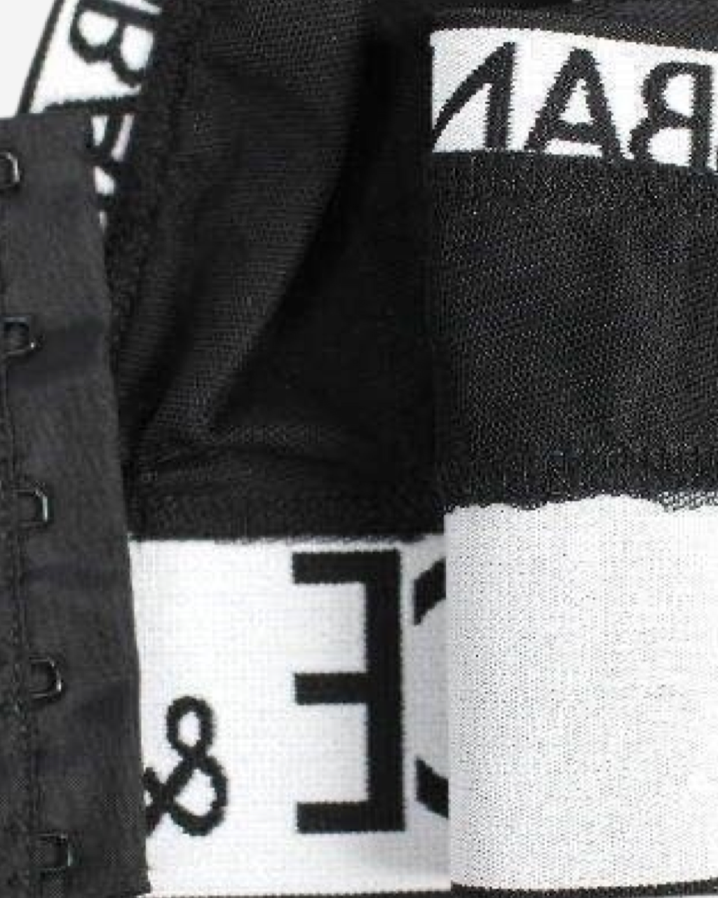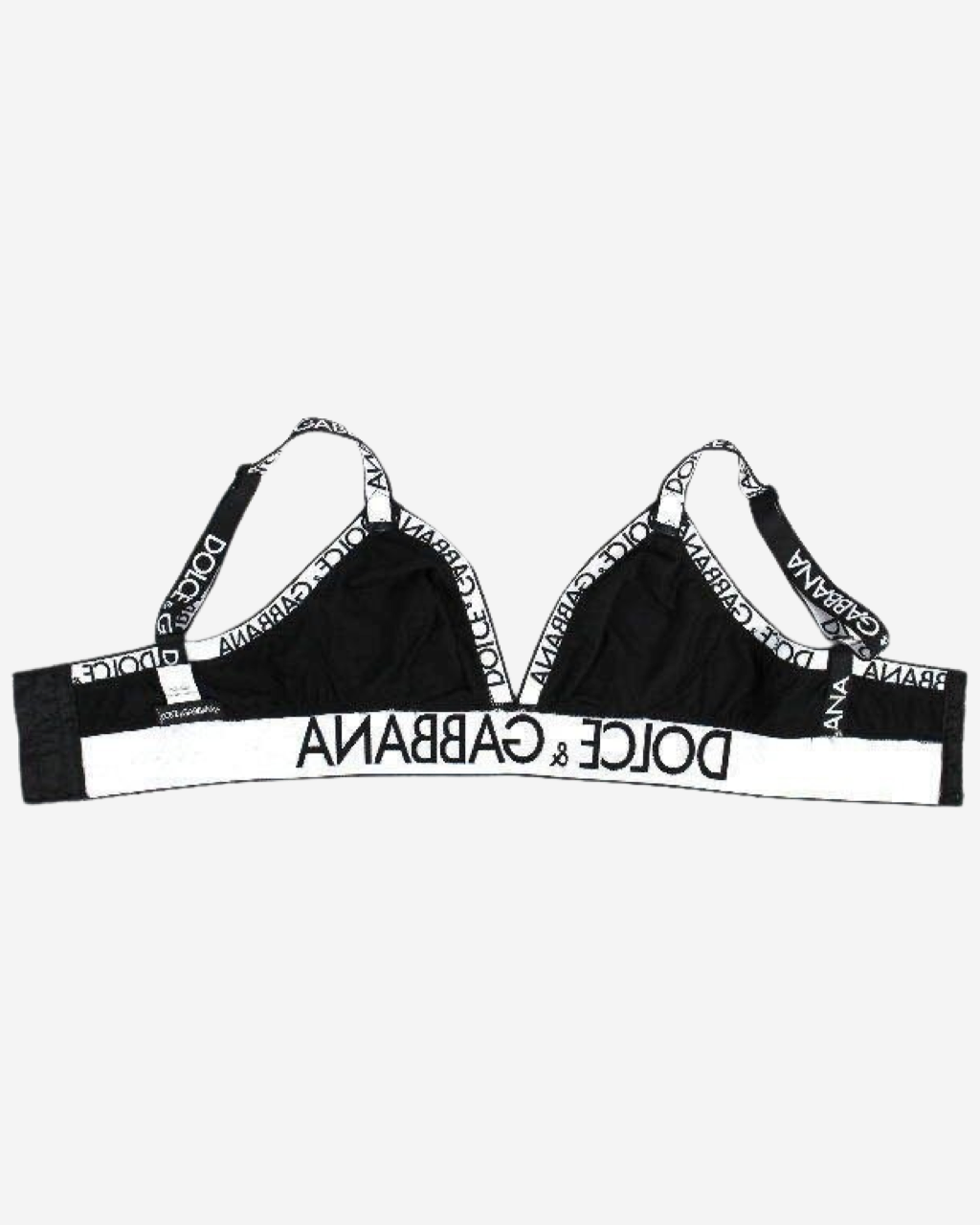 • Descripción: Bralette estilo triángulo con franja de logo, tiras de hombro anchas y cierre con broche en la parte posterior.
